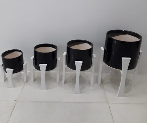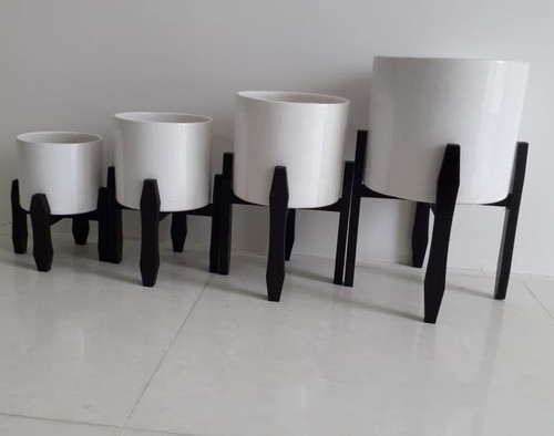 گلدان سرامیک ساده با پایه چوبی ست 4تایی