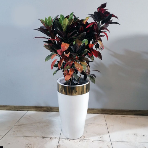 گیاه کروتن آکوبا با گلدان سفالی لوکس لبه استیل