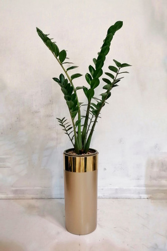 گیاه طبیعی زاموفیلیا سبز به همراه گلدان لوکس طلایی