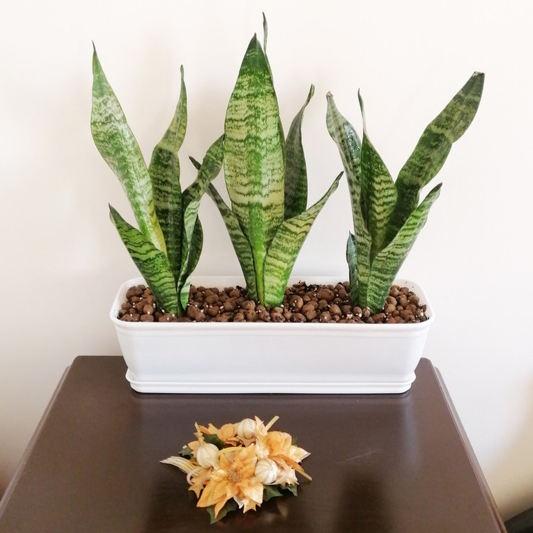 گیاه سانسوریا از جمله گیاهانی است که جای خود را به عنوان گیاهی زینتی در خانه ها باز نموده است. این گیاه بعلت سازگاری با نور کم و نیاز بسیار اندک به رسیدگی خواستگاه ویژه ای در میان علاقمندان به گل و گیاه دارد. گیاه سانسوریا کرواتی از انواع زیبای خانواده سانسوریا است. که به راحتی نیز تکثیر می گردد. این کالا شامل سه بوته پر برگ گیاه سانسویاکرواتی سبز به همراه گلدان پلاستیکی مناسب می باشد که با استفاده از خاک و کود های آلی مناسب تغذیه و آماده سازی شده است مهمترین نکات نگهداری از این گیاه به شرح زیر است. نور: سانسوریا خود را با شرایط گوناگون محیطی بهخوبی وفق میدهد. نور غیرمستقیم را ترجیح میدهد. به همین علت است که سانسوریا برای پرورش در محیط بسته و آپارتمان بهترین گزینه است. حتی نور مصنوعی که در منازل و محیط کار ما وجود دارد نیز برای سانسوریا کافی است! اما طبیعتاً سانسوریا در نور طبیعی و فراوان رشد بهتری دارد. دما دمای بسیار بالا موجب سوختگی یا لوله شدن برگهای سانسوریا میشود. همچنین سانسوریا دمای زیر 10 درجه سانتی گراد را هم دوست ندارد. دمای ایده آل برای سانسوریا بین 21 الی 32 درجه سانتی گراد است. بهطور کل سانسوریا هوای گرم ملایم را ترجیح میدهد. رطوبت: سانسوریا کراواتی به رطوبت فراوان نیاز ندارد. رطوبت طبیعی منزل یا محیط کار شما برای سانسوریا کافی است. خاک :خاک سبک و زهکش که سریعاً خشک شود بهترین گزینه برای سانسوریا است. میتوانید از خاک مخصوص کاکتوس و ساکولنت نیز استفاده کنید. اگر از خاک معمولی باغچه استفاده کردید حتماً به آن پرلیت یا ماسه اضافه کنید تا سبک شود. خاک سنگین برای سانسوریا و هرگیاه آپارتمانی و زینتی به شدت مضر است. آبیاری سانسوریا به آب کمی برای زنده ماندن نیاز دارد. هر موقع سطح خاک گلدان کاملاً خشک شد، به سانسوریا آب بدهید. مقاومت سانسوریا در برابر کمآبی موجب میشود که برخی آن را بهکل فراموش کرده و حتی در مواقع نیاز نیز آب را از سانسوریا دریغ کنند! درست است که سانسوریا استقامت بالایی دارد اما غفلت و بیتوجهی مکرر در آبیاری آن نیز نتیجهای جز آسیب به گیاه و قهوهای شدن برگهایش ندارد.