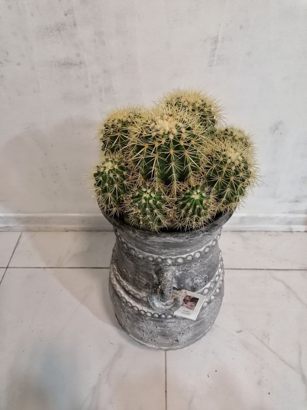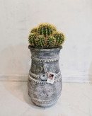 گیاه طبیعی کاکتوس اچینو به همراه گلدان کوزه پتینه کاری 60 سانت