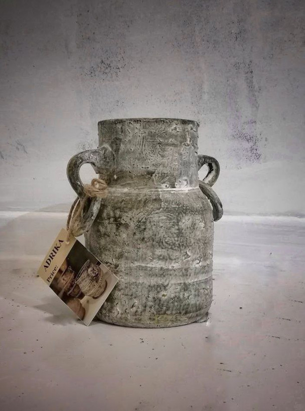 گلدان پتینه کاری رومیزی بسبار زیبا با ارتفاع 20 سانت رنگ طوسی
