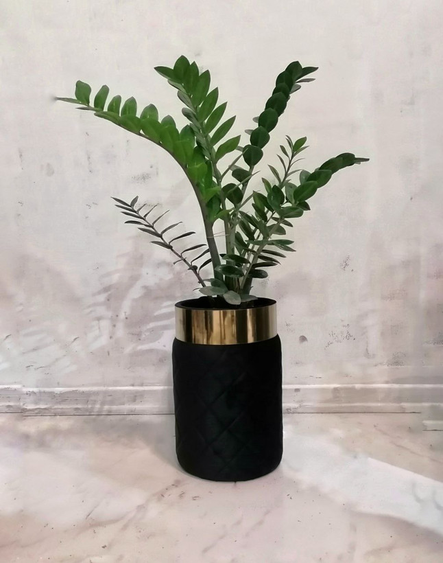 گیاه زاموفیلیا بسیار زیبا به همراه گلدان مخمل لبه استیل ارتفاع گیاه و گلدان 100 سانت