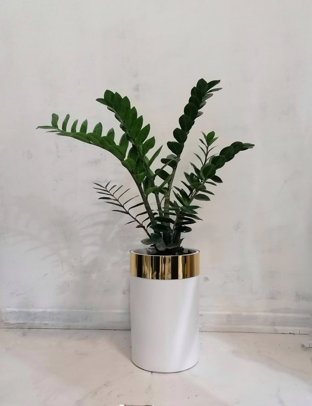 گیاه طبیعی زاموفیلیا سبز به همراه گلدان لوکس طلایی