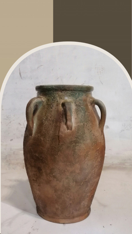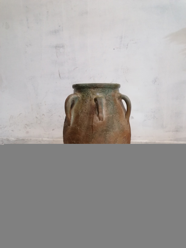 کوزه خمره سفالی پتینه کاری شده کلکسیونی کد 3