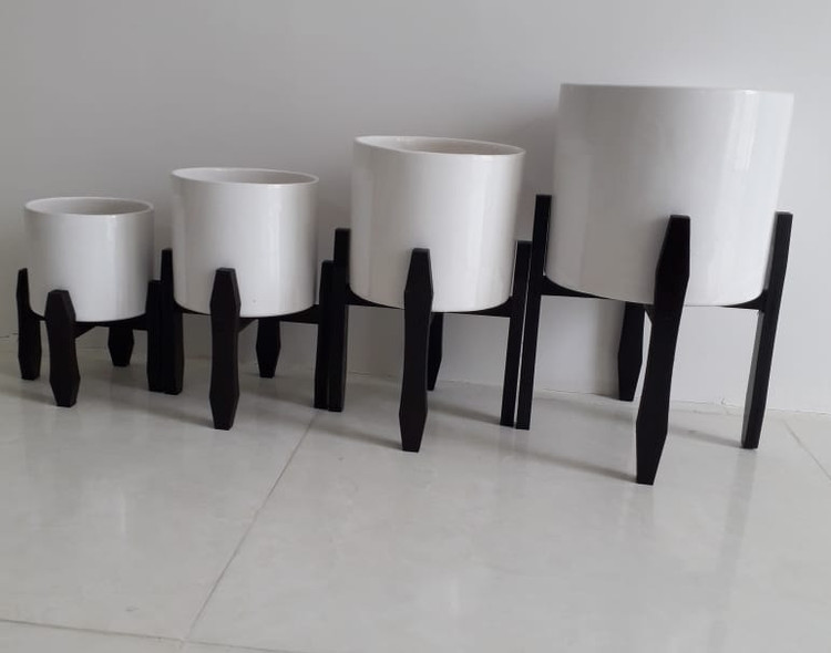 گلدان سرامیک با پایه چوبی ست 4تایی
