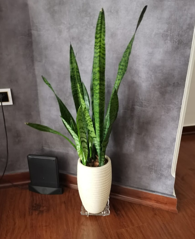 گیاه سانسوریا شمشیری سبز با گلدان سفالی