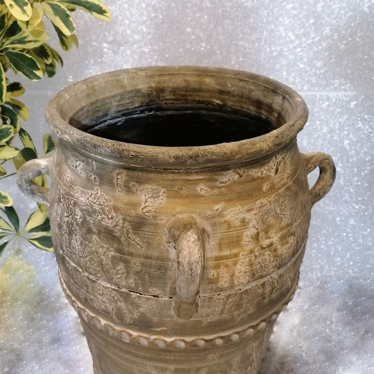 کوزه سفالی مدل پتینه کاری شده 60 سانتی دهنه 35