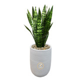 این گیاه همیشه سبز به سایه و خشکی مقاوم است، از این رو نگهداری از آن برای ادارات، کارخانهها و بانکها نیز مناسب است، برگهای بلند و کشیده آن نگاه را به سمت بالا هدایت کرده و قرار دادن گلدان سانسوریا در کنار ستونها، زیبایی خاصی را به محیط کار میدهد.از خواص گیاه سانسوریا، تصفیه و پاکسازی هوای محیط است. بر اساس تحقیقات انجام شده این گیاه میتواند سموم و گازهای آلوده موجود در هوا مانند «تولوئن» یا «فرمالدئید» را تصفیه کند. از این رو کارشناسان توصیه میکنند که از این گیاه در اتاق خواب استفاده شود تا با تصفیه هوا خوابیدن بسیار راحتتر شود. سانسوریا همانند سایر اعضای خانواده کاکتوسها از مقاومت بالایی در هوای گرم و خشک برخوردار است، از این رو نگهداری آن با شرایط اقلیمی منطقه ما مناسب است، همچنین میتواند در درون ساقه و برگهای خود حجم زیادی از آب را برای مدت زمانی طولانی نگاه دارد؛ بنابراین میزان آب موردنیاز آن نیز بسیار کم است. برگهای سانسوریا مستقیم و شمشیری شکل است، از این رو در فارسی به آن گیاه شمشیری نیز گفته میشود. رنگ برگها سبز تیره یا ابلق طلایی با نوارهای طلایی در دو طرف حاشیههای برگ است. ارقام پاکوتاه این گیاه نیز وجود دارد که در این گونه، برگها مستقیم از خاک خارج میشوند، البته این گونه گل سانسوریا دارای نوعی ساقه زیرزمینی به نام ریزوم است که برگها مستقیم از روی آن خارج میشوند و گیاه از این طریق تکثیر میشود.