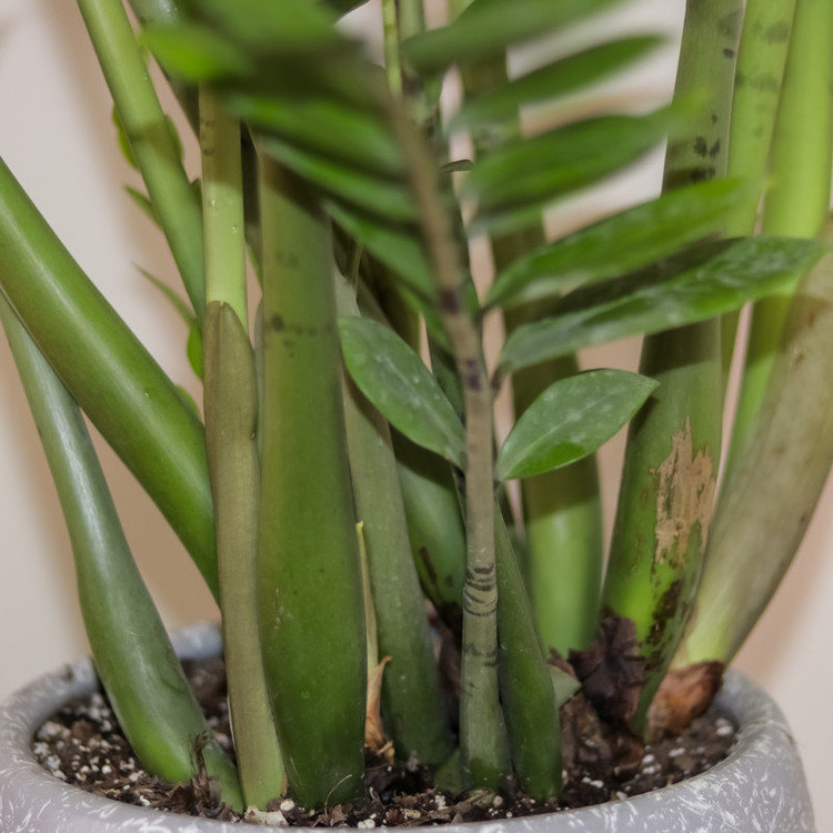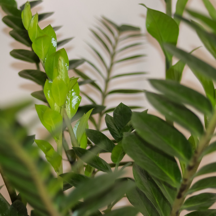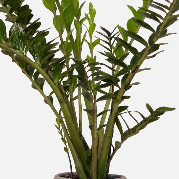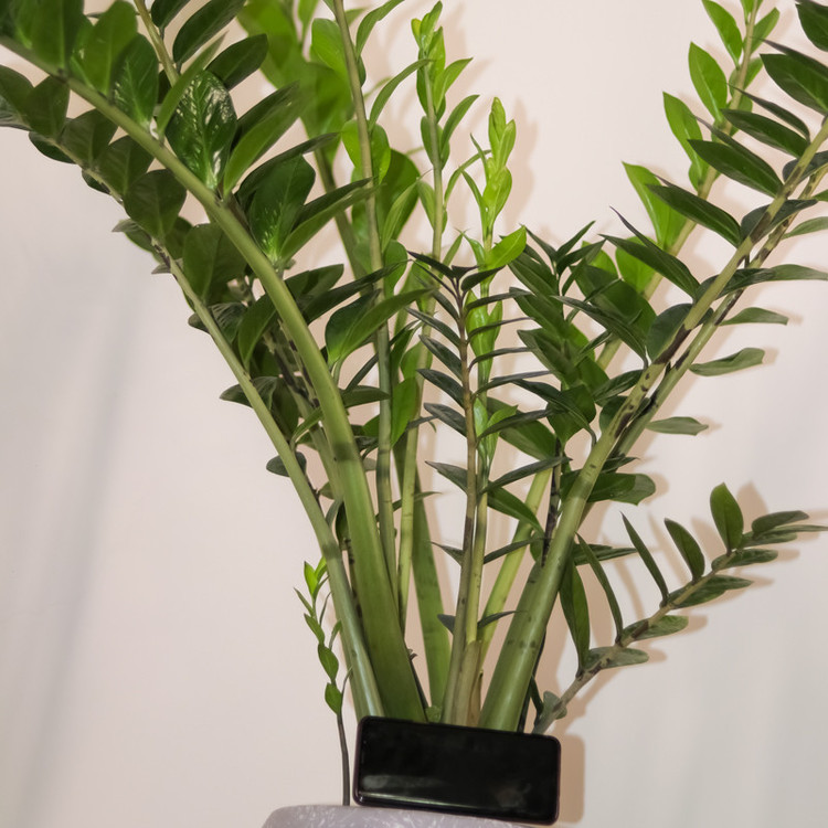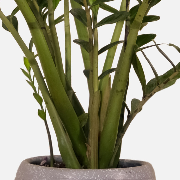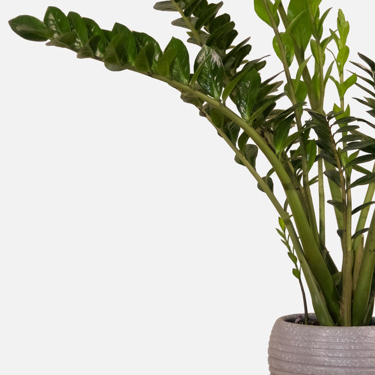 گلدان زاموفیلیا در سایز بزرگ این گیاه با ارتفاع حدود یک و نیم متر و پهنای حدود یک متر، یک گیاه بسیار خاص بین محصولات هست، همچنین دارای حدود 18 تا 20 برگ بزرگ و دوستداشتنی هست که جلوه خاصی به دکوراسیون داخلی خواهد داد گیاه بسیار زیبا و جذاب زامیفولیا که البته اون رو با نام زاموفیلیا هم میشناسیمش. یک گل خاص و ماندگار که نیاز به نگهداری خاصی ندارد. حتی در شرایط کم آبی و کم نوری هم می توان به راحتی از این گیاه نگهداری کرد. شرایط نگهداری زامیفولیا : Zamioculcas zamiifolia دما: بهترین دما برای این گیاه مقاوم ۲۲در شب الی ۳۰ درجه در روز میباشد در صورت گرم شدن بیشتر باید با اسپری برگها را آبپاشی کنید آبیاری:تنها دشمن این گل آبیاری زیاد میباشد زیرا این گیاه در ریشه های خود که به صورت ساقه زیرزمینی است آب جمع میکند و آبیاری زیاد باعث پوسیدگی ان می شود .به طور کل هروقت خاک این گل کاملا خشک شد گیاه را دوباره سیرآب کنید در زمستان هم که هفته ای یکبار آب ندهید نور: این گل خب برای رشد مطلوب و شرایط ایده آل به جای روشن نیاز دارد ولی در مکانهای تاریک تر هم قادر به زنده ماند و ادامه ی زندگی هست.باید مواظب باشید که اشعه آفتاب به برگ گیاه نخورد زیرا باعث سوختن آن میشود. نور زیاد باعث کلفت تر شدن ساقه برگها میشه و نور کم باعث نازک شدن اونها میشه ! رطوبت: به لطف داشتن برگهای واکسی خود در برابر ازدست دادن آب از برگ و کمبود رطوبت مقاوم است ولی خب در صورت امکان مکان دارای حدود ۵۰ درصد رطوبت به عنوان یک آپشن مطرح است و در رشد گیاه تاثیر بسزایی دارد ولی همانطور که گفته شد رطوبت یک آپشن است نه یک اجبار!! خاک: به خاکی سبک با زهکشی عالی نیاز دارد مثلا خاک کاکتوس گزینه ی مناسبی برای این گل است تغذیه: دوستان طبق تجربه این گل عاشق کودهای فسفر بالا و پتاسیم بالا هستش یعنی بهتره براش از کودهای گلدهی استفاده بشه ، فسفر وظیقهی ریشه دهی در گیاه رو داره این گل هم چون که به جای ریشه ریزوم داره عاشق فسفره و فسفر باعث میشه تعداد برگهاش زیادتر بشن !! حتما کودای فسفر بالا و پتاس بالا بدید