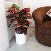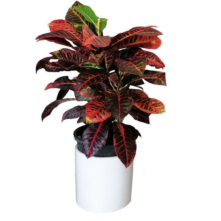 آبیاری گیاه کروتون برخواسته از طبیعتی گرمسیری است، بنابراین هوای گرم و مرطوب برای آن بسیار ایدهآل است. خاکی که کروتون در آن کاشته میشود، باید بتواند در فصل بهار و تابستان (فصول رشد گیاه) به خوبی رطوبت را در خود حفظ کند و در عین حال خیس نباشد. برای تشخیص زمان صحیح آبیاری، چند سانتیمتر رویی خاک را لمس کنید. اگر خاک خشک بود، باید گیاه را آبیاری کنید. اگر هوای اتاق خشک است، لازم است هر چندوقت یکبار گیاه را به کمک یک اسپری آب مرطوب کنید. این کار به حفظ سلامت برگها کمک میکند. مانند اکثر گیاهان دیگر، آبیاری کروتون نیز به دقت بالایی نیاز دارد. این گیاه نیازمند آبیاری مداوم است، اما شما باید دقت کافی را به خرج دهید تا آن را غرقاب نکنید. آب بیش از حد پوسیدگی ریشه را در پی خواهد داشت، در حالی که آبیاری کم نیز باعث خشک شدن این گیاه رطوبت دوست میشود. میتوانید برگهای جدیدتر گیاه را به عنوان شاخصی برای تعیین میزان نیاز گیاه به آب در نظر بگیرید، به گونهای که اگر برگ شروع به پژمرده شدن کرد یعنی کمآب است و باید سریعا آبیاری شود. رطوبت و دما بهتر است آن را در مکانی مرطوب قرار دهید و یا با روش های مصنوعی رطوبت هوای اطراف گیاه را تامین کنید. بهترین راه قرار دادن کالاتیا در حمام و یا آشپزخانه است. یک راه مناسب برای حفظ طراوت کروتون قرار دادن آن در مکان خنک است. به عنوان یک گیاه گرمسیری، کروتون از بودن در هوای گرم لذت میبرد. اگر در دمای کمتر از 12 درجه سانتیگراد قرار بگیرد، برگهای آن قهوهای رنگ میشوند. بهترین دما برای کروتون، دمایی نزدیک و یا کمتر از 26 درجه است. کروتون نمیتواند در دمای بیشتر از این دوام بیاورد. خاک بهترین رشد کروتون در خاکی است که ضمن داشتن زهکشی مناسب برای عبور دادن آبهای اضافی، بتواند هنوز کمی رطوبت را در خود حفظ کند. همانطور که بالاتر گفتیم وجود رطوبت برای کروتون (به عنوان گیاهی گرمسیری) ضروری است. اگر خاک بیش از حد آب را درون خود نگه دارد، زمینههای اساسی برای فاسد شدن ریشه را برای گیاه فراهم میکند.