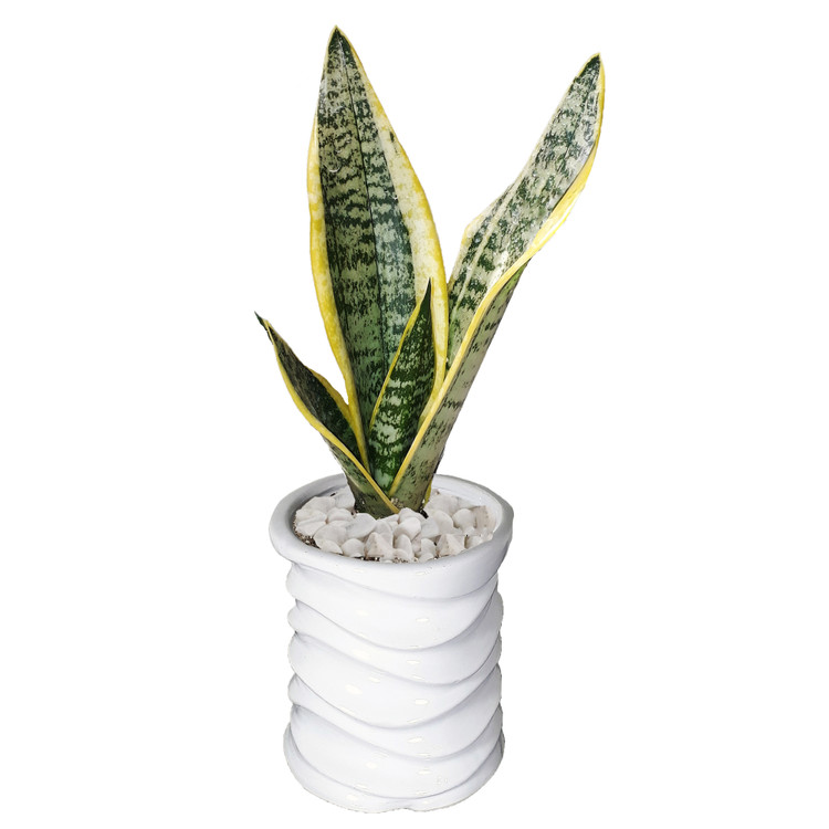 این گیاه که در دنیای گیاه شناسی به اسم Sansevieria trifasciata شناخته می شود، گیاهی دوست داشتنی از خانواده نام آشنای Liliaceae است. این گیاه از سرزمین های گرم و خشک قاره آفریقا همچون کشورهای کنگو و یا نواحی خاصی از نیجریه این مسافت طولانی را طی کرده تا مهمان خانه ما شود. اگر قصد خرید گل دارید، ما به شما توصیه می کنیم که سانسوریا را به واسطه قدرت بالایی که در جذب 4 الی 5 درصدی مواد سمی و آلاینده محیط اطراف (تولوئن و یا فرمالدهید) دارد، در لیست گزینه های جدی که باید درباره آن ها به درستی فکر کرد، قرار دهید. این گیاه همچنین قدرت بالایی در تولید گاز اکسیژن دارد و می تواند در تصفیه هوای محلی که در آن قرار گرفته شده است، نقش بسیار مهمی ایفا کند. شما می توانید با قرار دادن این گل در اتاق خواب خود، لذت تجربه یک خواب و با کیفیت بالا را برای خود به ارمغان بیاورید. برگ های سبز رنگ و شمشیری و کشیده، اصلی ترین مشخصات ظاهری این گیاه هستند. لازم به ذکر است که گل سانسوریا در دو دسته کلی زیر اغلب پرورش داده می شود: - ابلق(به واسه زرد بودن دور تا دور برگ های گیاه، از زیبایی ظاهری بالاتری برخوردار است.) - سبز میزان رشد این گیاه بسته به شرایط محیط و سایر عوامل دیگر می تواند مقادیر متغیری از 50 الی 70 سانتی متر را به خود بگیرد. شایان ذکر است که این گیاه می تواند تا 1 متر و حتی بیشتر نیز رشد کند. رطوبت این گیاه برای رشد و حفظ طراوت خود به رطوبت بالایی نیاز ندارد و اگر شما آن را در محیطی با میزان رطوبت معمولی نگه داری کنید، هیچ گونه نگرانی بابت آن وجود نخواهد داشت. خاک خاکی که برای این گیاه در نظر گرفته می شود باید از قدرت زهشکی مناسبی برخوردار باشد. اگر به دنبال یک ترکیب جادویی برای این گیاه هستید، ترکیب خاک برگ و خاک کاکتوس و خاک باغچه، انتخاب بسیار هوشمندانه ای است. آبیاری بهتر است از آب مانده که مواد مضری همچون کلر و یا فلوراید در آن وجود ندارد، استفاده کنید. برای این کار کافی است که مقدار مشخصی آب را در داخل یک ظرف بریزید و مدتی در حدود چند روز آن را بی حرکت در جایی قرار دهید. این گیاه به واسطه برگ های گوشتی، قدرت بالایی در نگه داشتن آب درون خود دارد. به همین جهت لازم به نظر می رسد که باید پیش از آبیاری گیاه از خشک بودن خاک گلدان آن اطمینان کافی پیدا کنید.